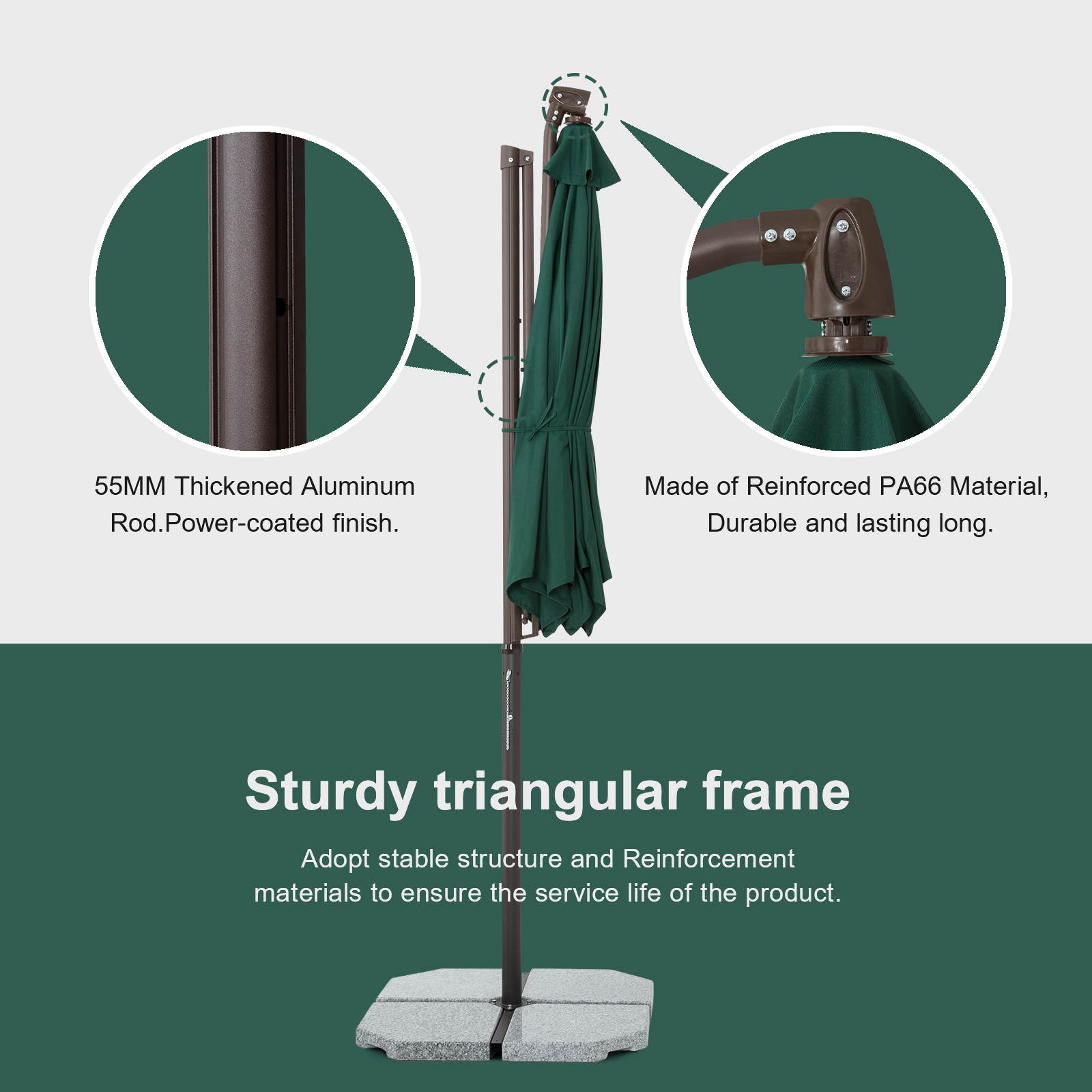 ¡¾Top Framework & Excellent Stability¡¿Tempera premium umbrella uses the enhanced and thickened aluminum pole which is lighter and more stable. The aluminum pole and screw parts adopt advanced spraying technology to prevent scratches and rust.