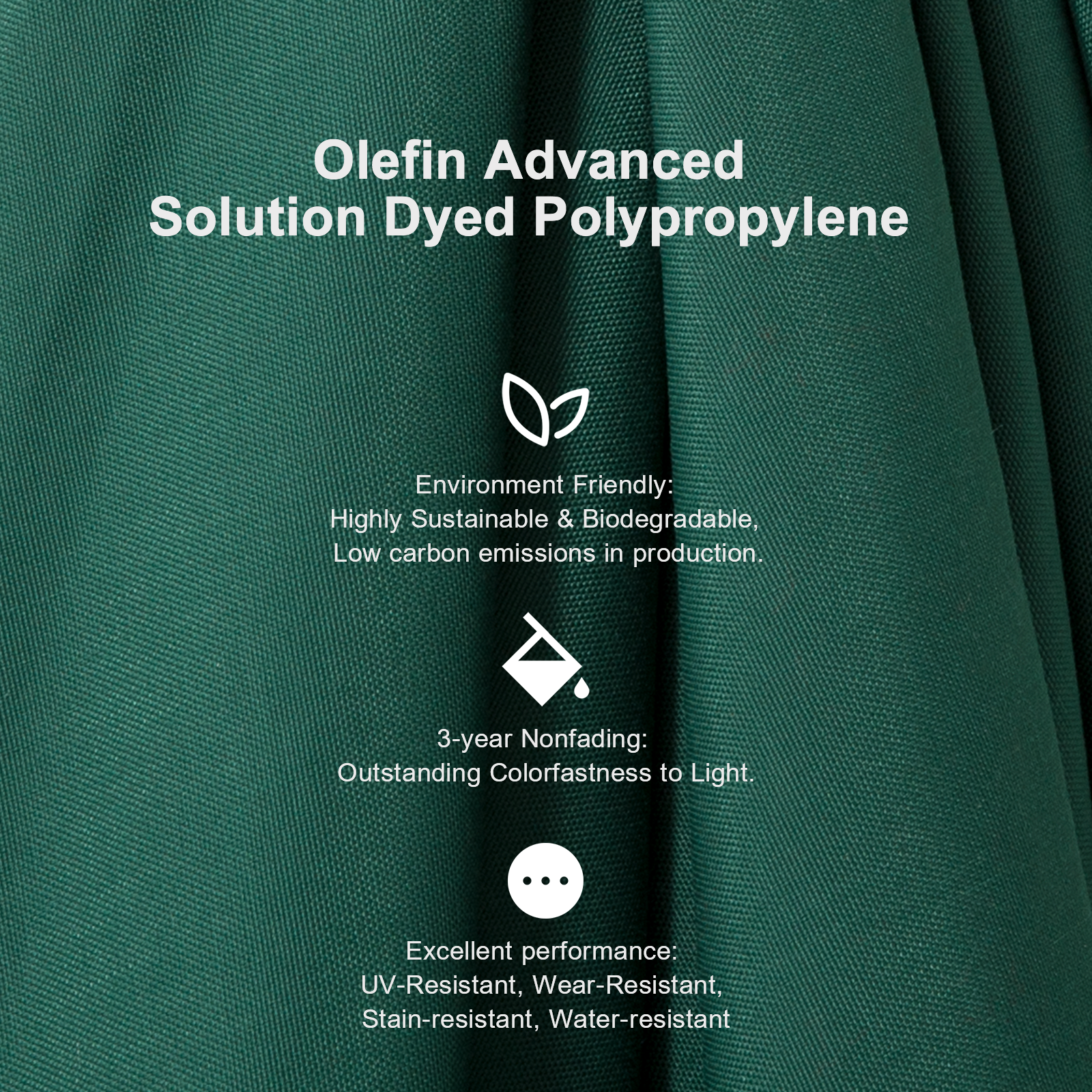 ¡¾High Color Fastness Olefin Canopy¡¿Made of 3-year non-fading Olefin with US Standard AATCC 16 Grade 5 which is a kind of ideal and affordable outdoor fabric, water repellant and block up to 98% of UV rays. Not recommended for use on rainy days. We proudly provide a 3-year fade-resistant canopy warranty.