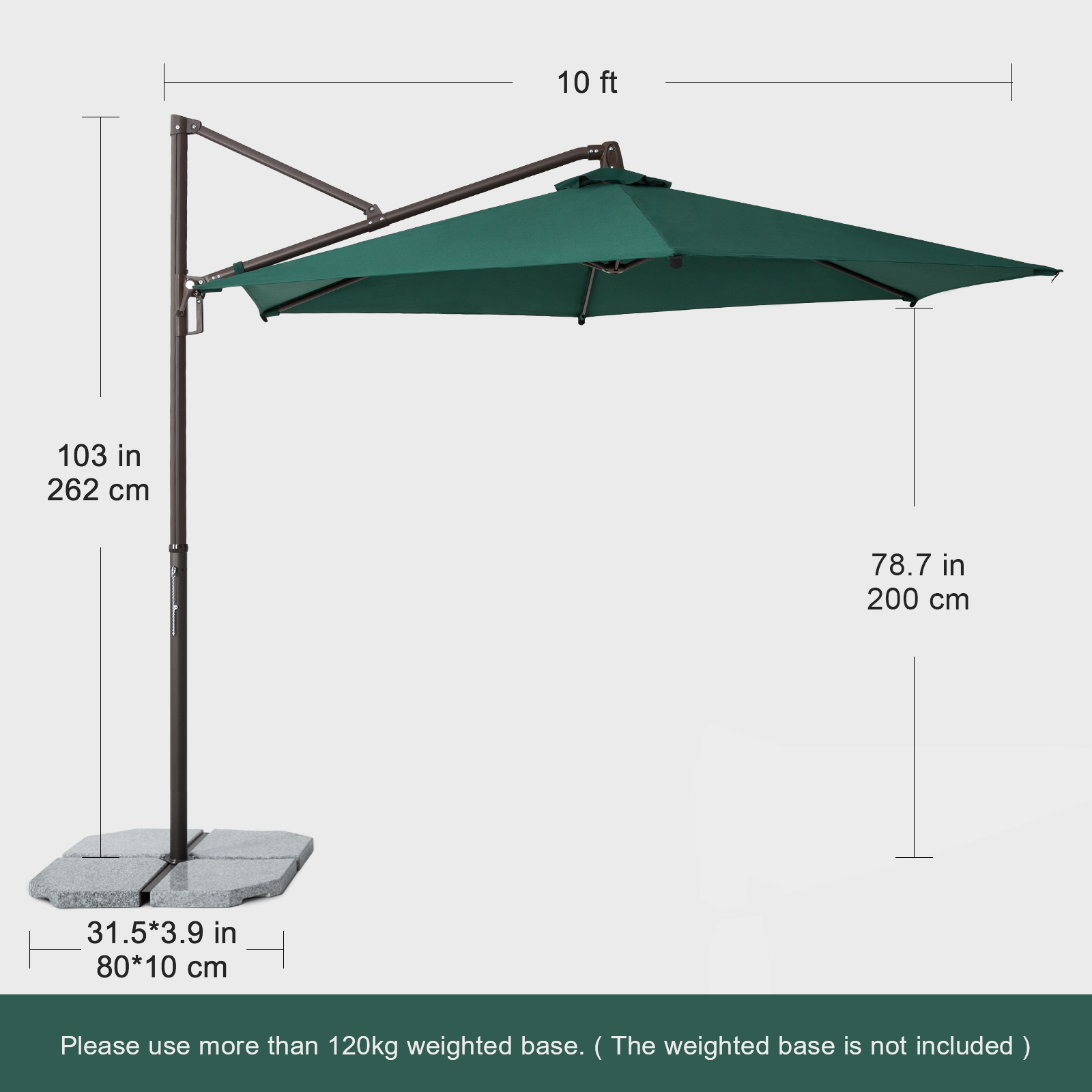 Tempera 10Ft Premium Patio Cantilever Umbrella Forest green