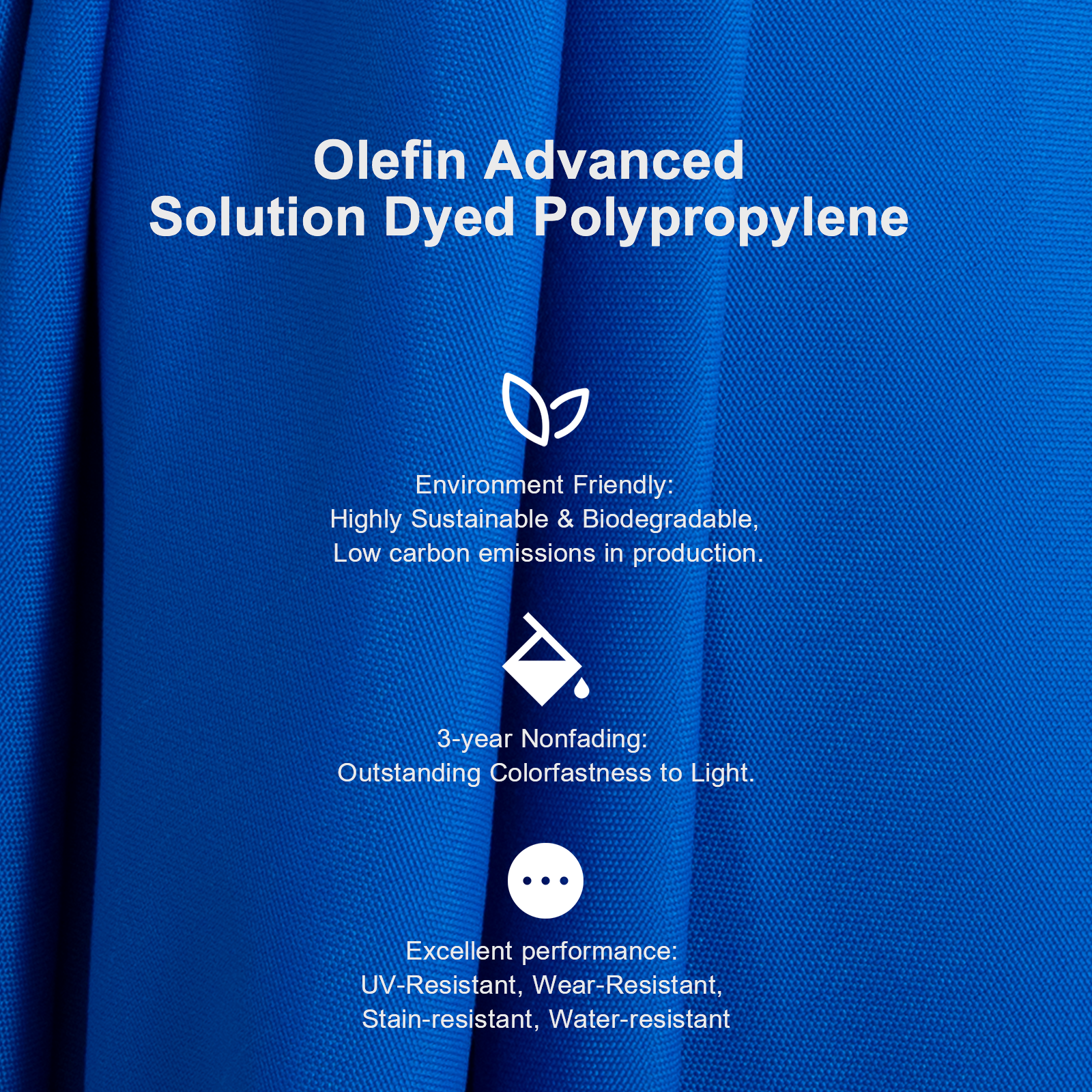 ¡¾High Color Fastness Olefin Canopy¡¿Made of 3-year non-fading Olefin with US Standard AATCC 16 Grade 5 which is a kind of ideal and affordable outdoor fabric, water repellant and block up to 98% of UV rays. Not recommended for use on rainy days. We proudly provide a 3-year fade-resistant canopy warranty.