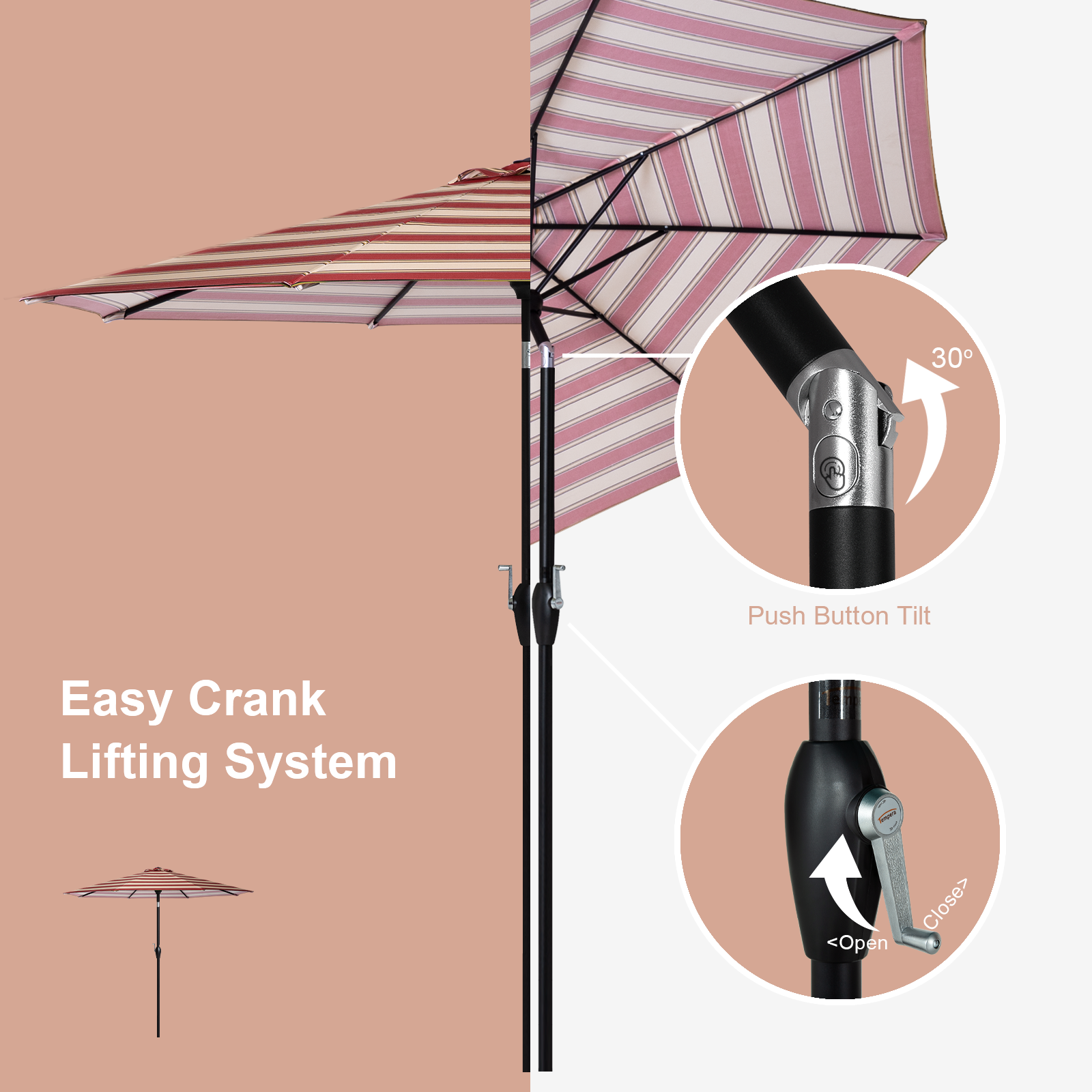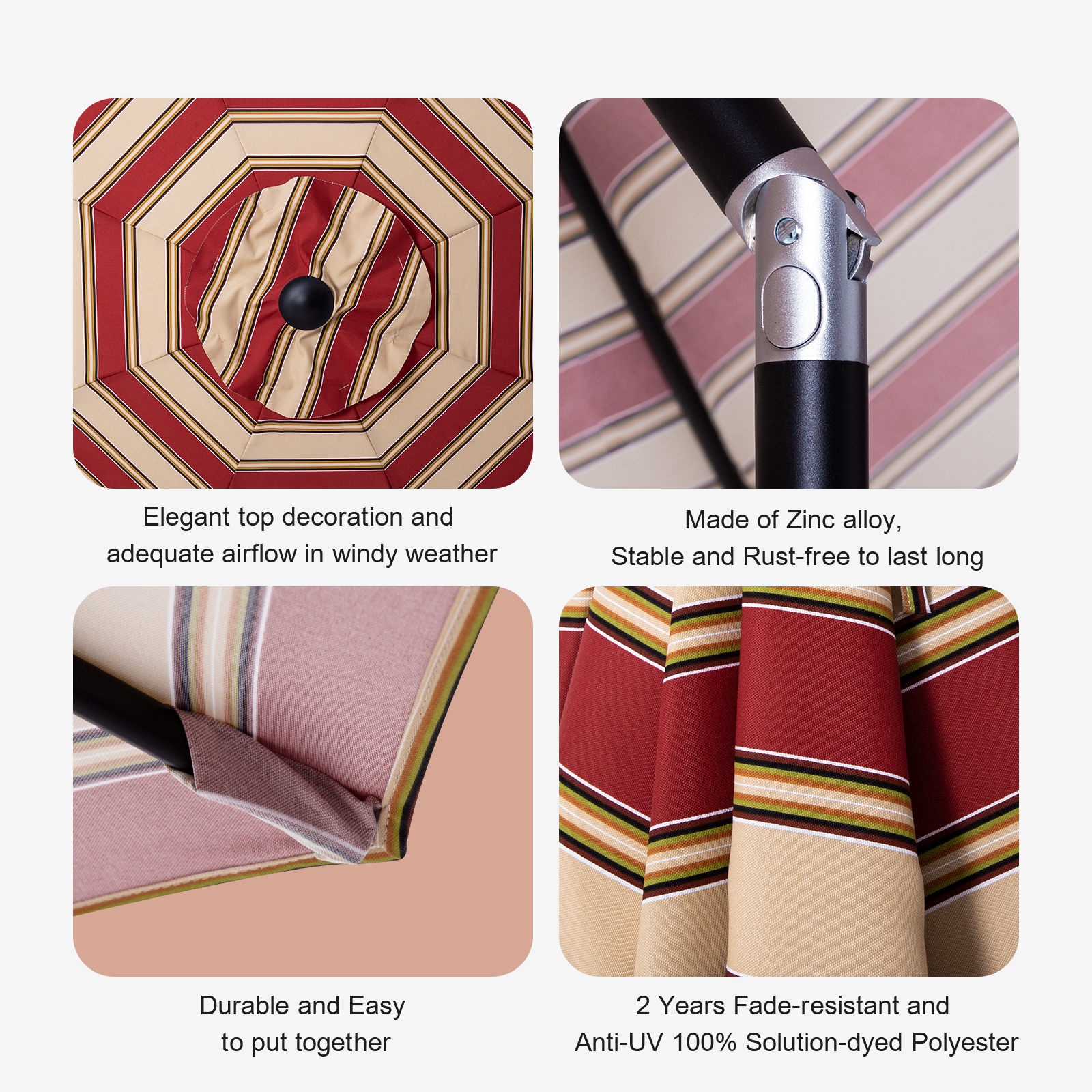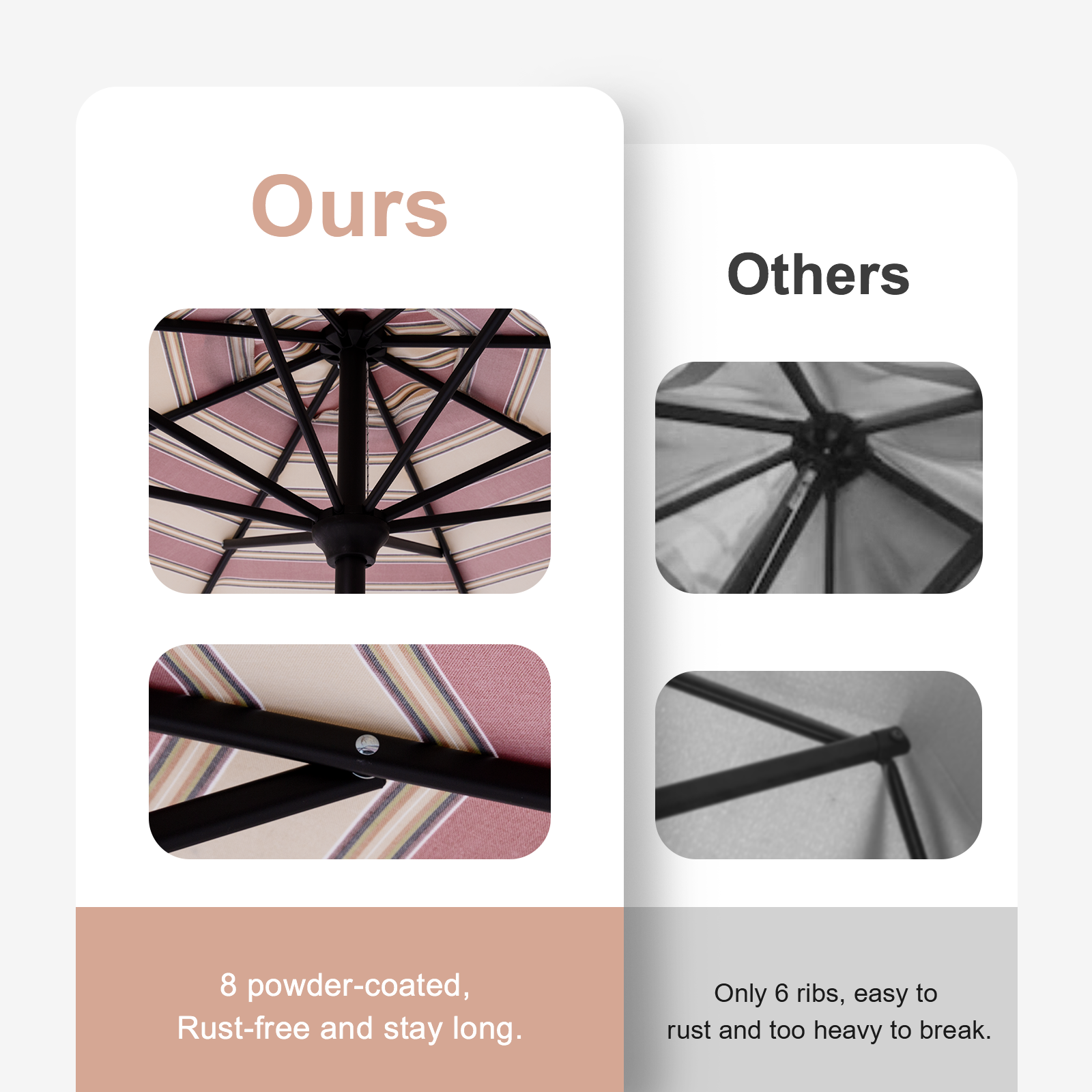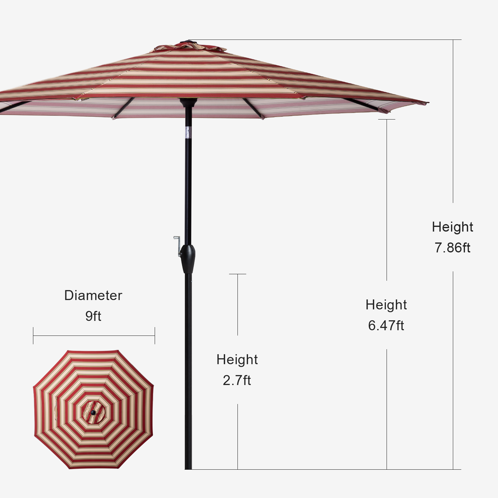 ¡¾Ideal Decor¡¿9 ft outdoor patio umbrella is wide enough for your 42" to 54" table and 4 to 6 chairs. Distinctive stripes provide bright decorations for your homes and commercial spaces. Ideal gifts for your garden, pool, porch, balcony, beach, lawn, and any other outdoor places