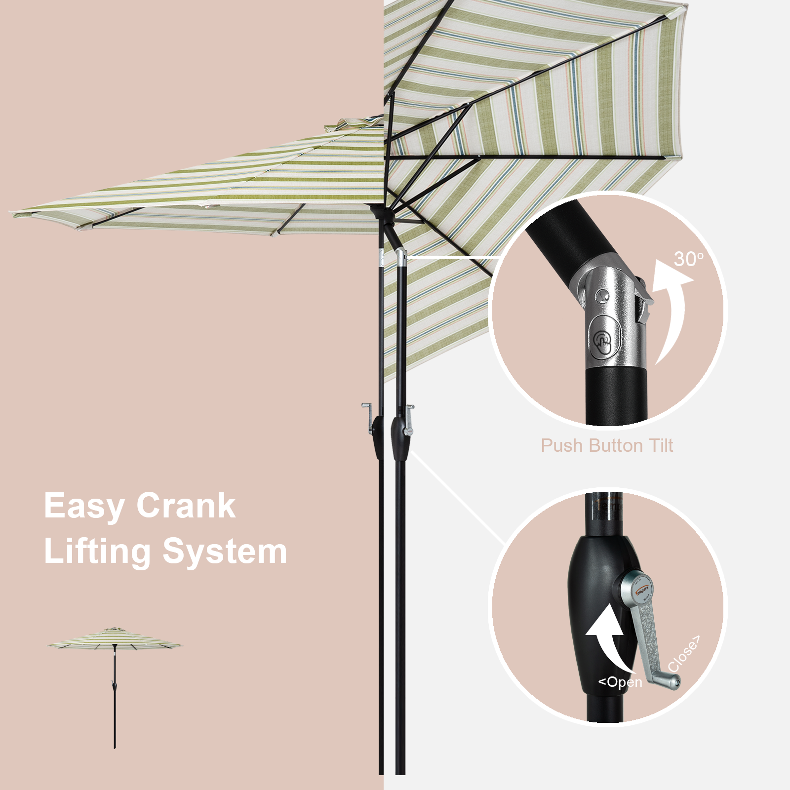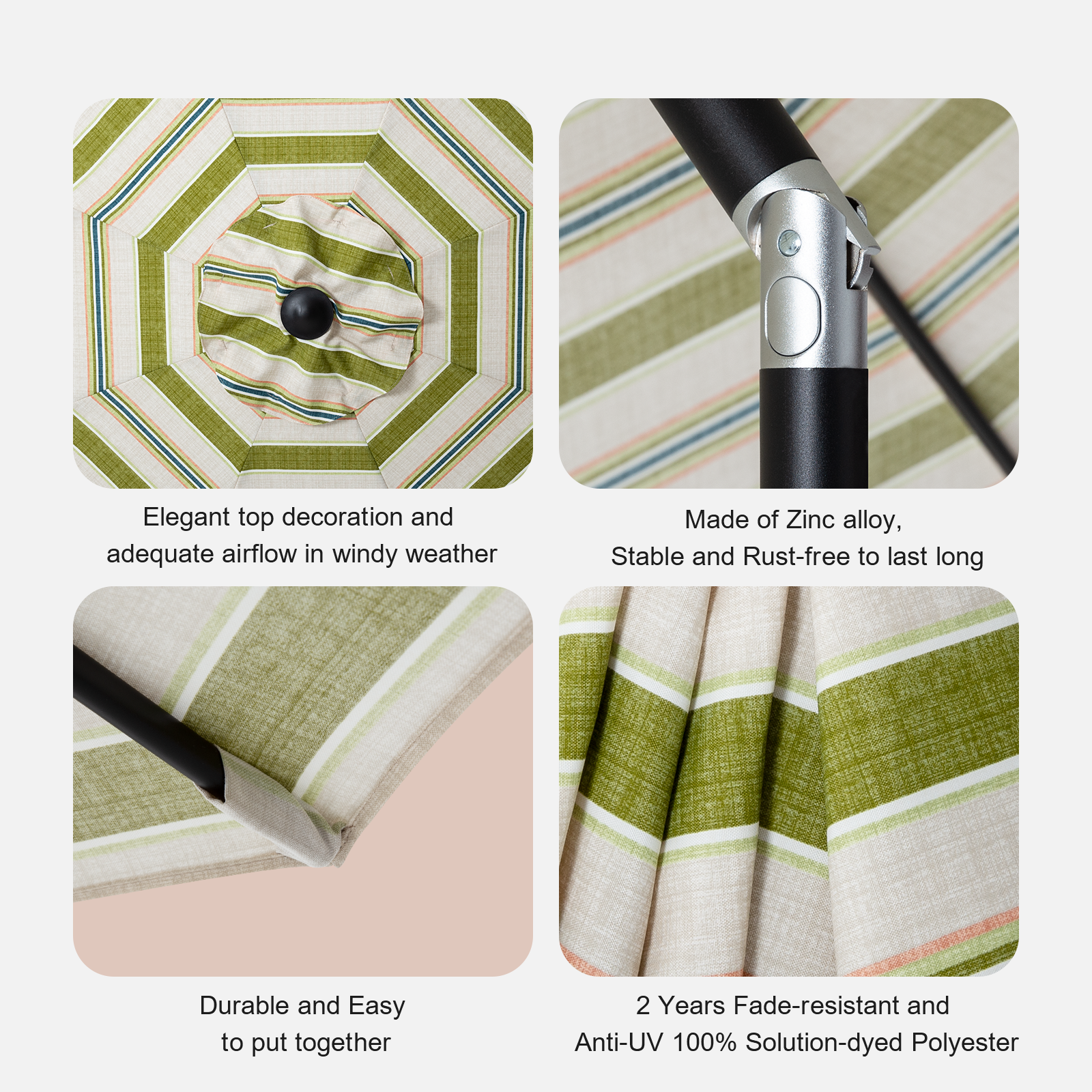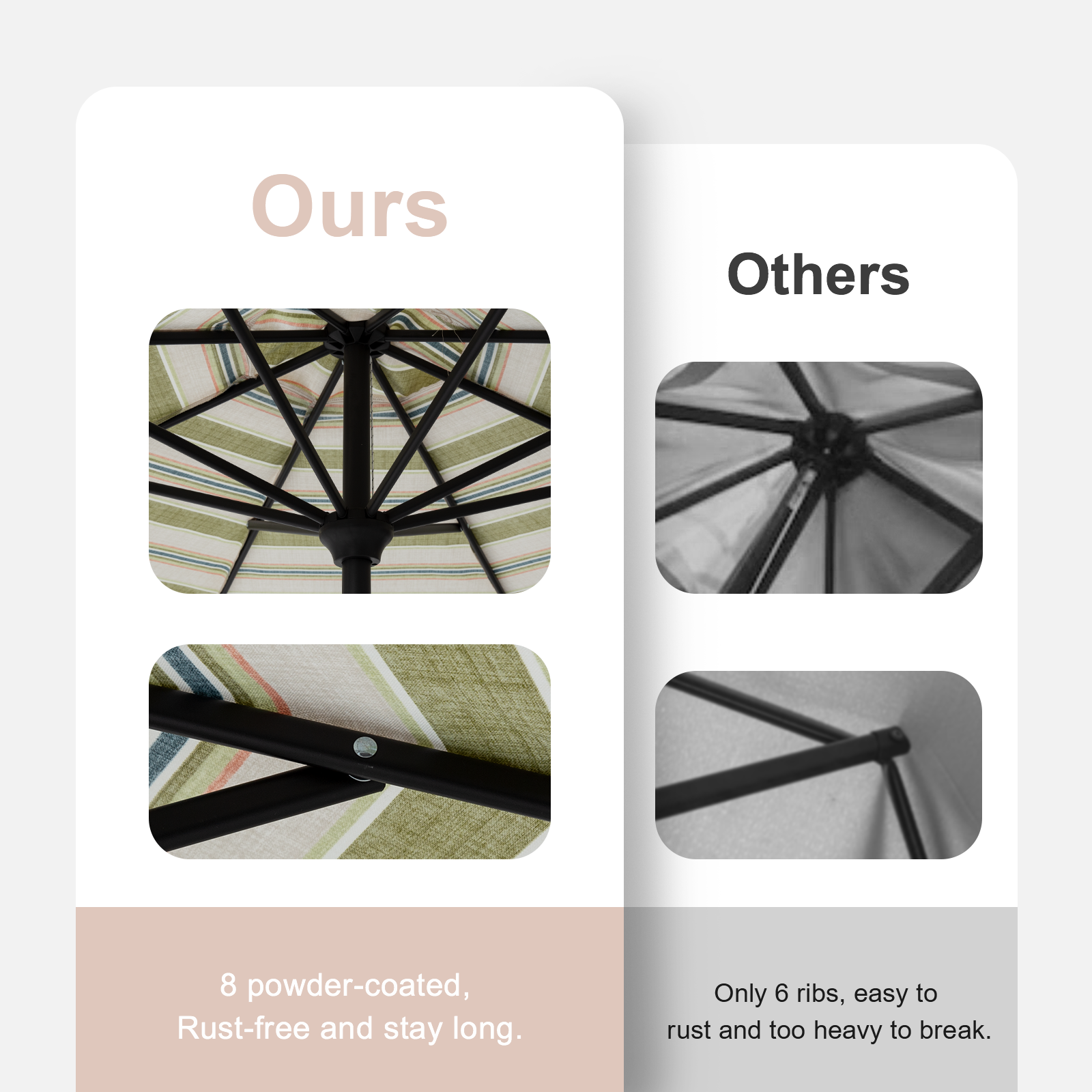 ¡¾Ideal Decor¡¿9 ft outdoor patio umbrella is wide enough for your 42" to 54" table and 4 to 6 chairs. Distinctive stripes provide bright decorations for your homes and commercial spaces. Ideal gifts for your garden, pool, porch, balcony, beach, lawn, and any other outdoor places