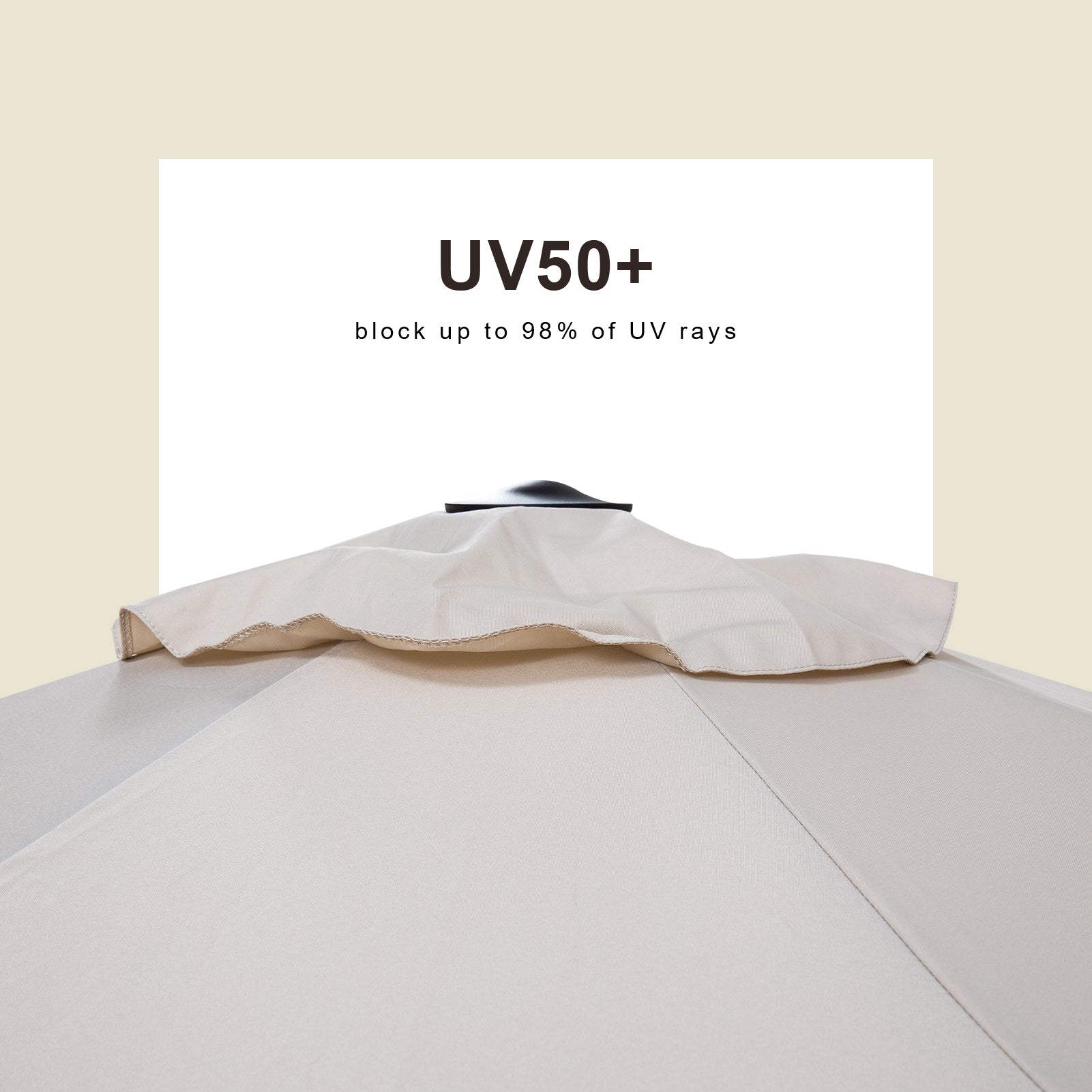 • Wind vent at the top of the umbrella allows hot air to circulate and add stability in case of sudden gusts of wind. All that's left is to enjoy the outdoors.